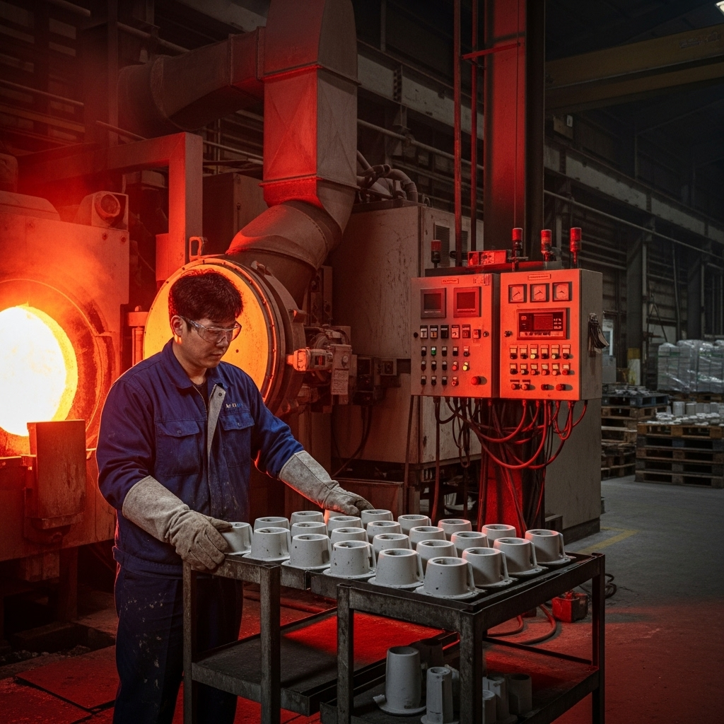 고온 용광로에서 세라믹 부품을 소결하는 장면, CAPA 인증 제조 파트너의 열처리 공정 사례