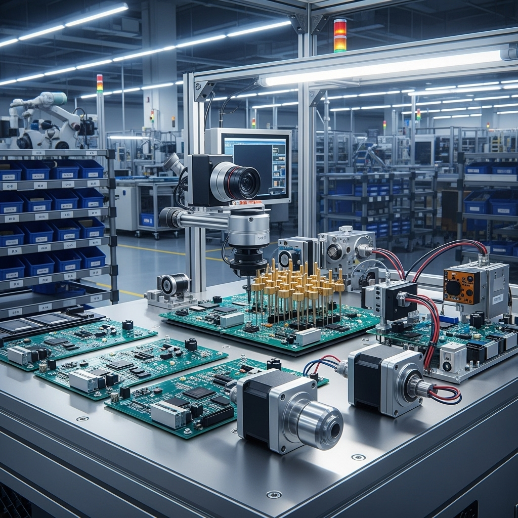PCB와 센서 부품이 품질 검사를 받는 장면, CAPA 품질관리 솔루션 사례