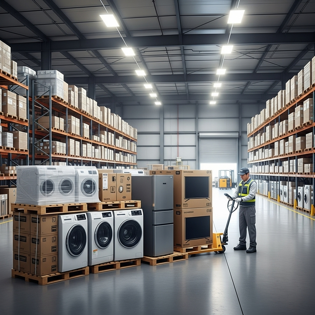 완성된 가전제품이 포장되어 출하되는 공장 내부, CAPA 공급망 관리 사례