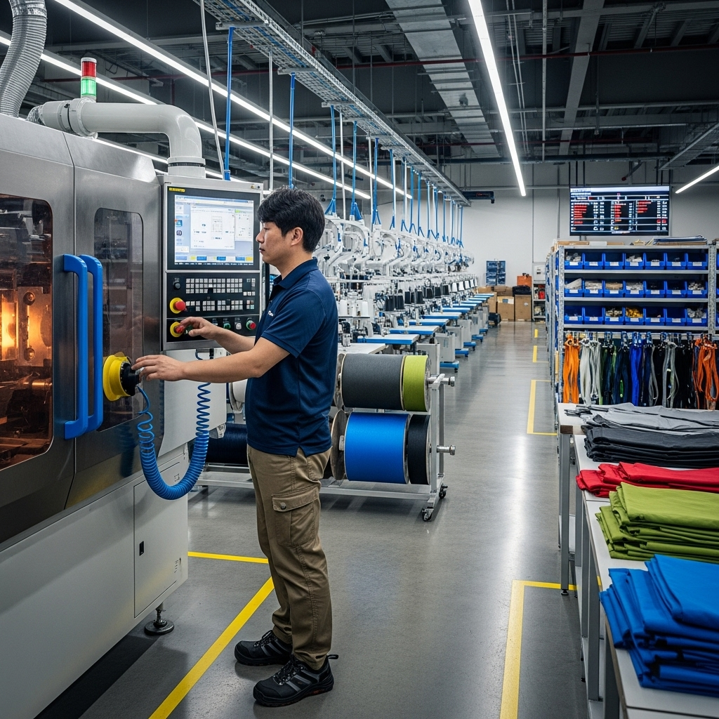 대량생산 단계에서는 공정 자동화, 재봉 품질, 소재 일관성이 중요합니다.