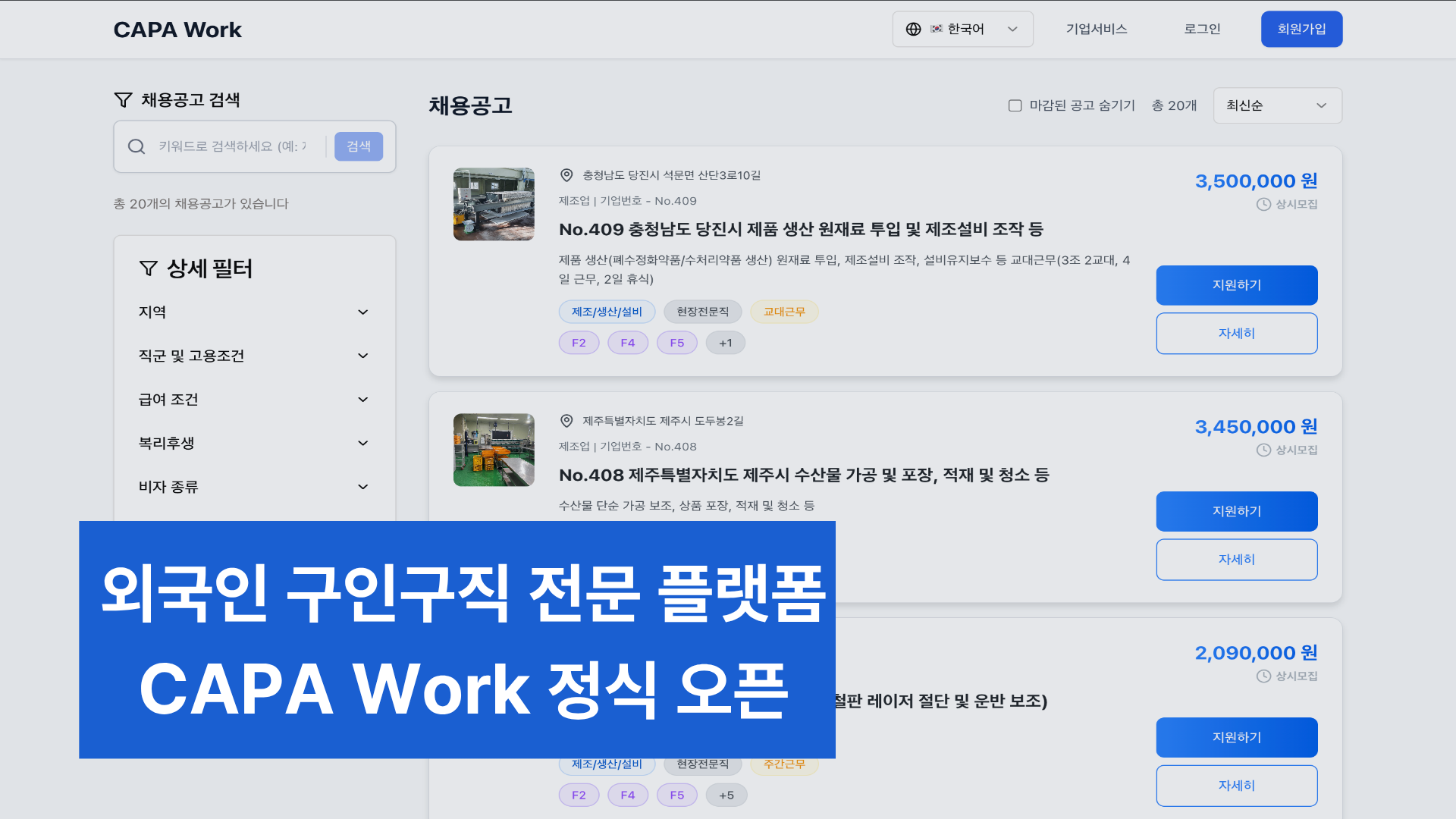 외국인 인력 채용, 이제 CAPA Work에서 한 번에 해결하세요! 외국인 인력 채용, […]