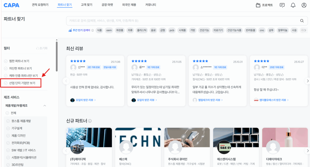 산업단지 외부 기업도 CAPA 플랫폼에서 산업단지 입주 공급기업을 찾아 협력하면 지원 신청이 가능합니다.