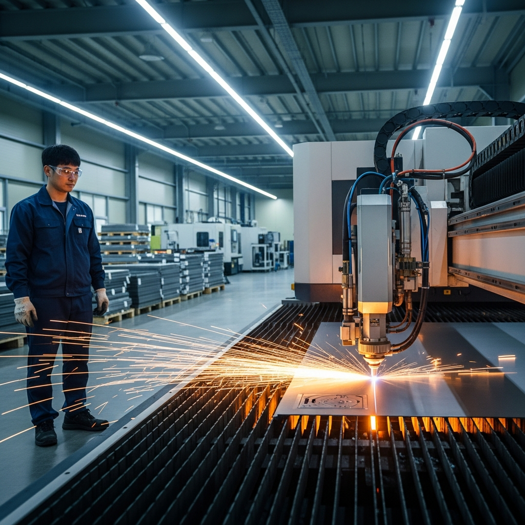 파이버 레이저 커팅 장비가 스테인리스 판재를 정밀 절단하는 생산 현장, 판금 가공 공정 이해, CAPA 파트너 사례